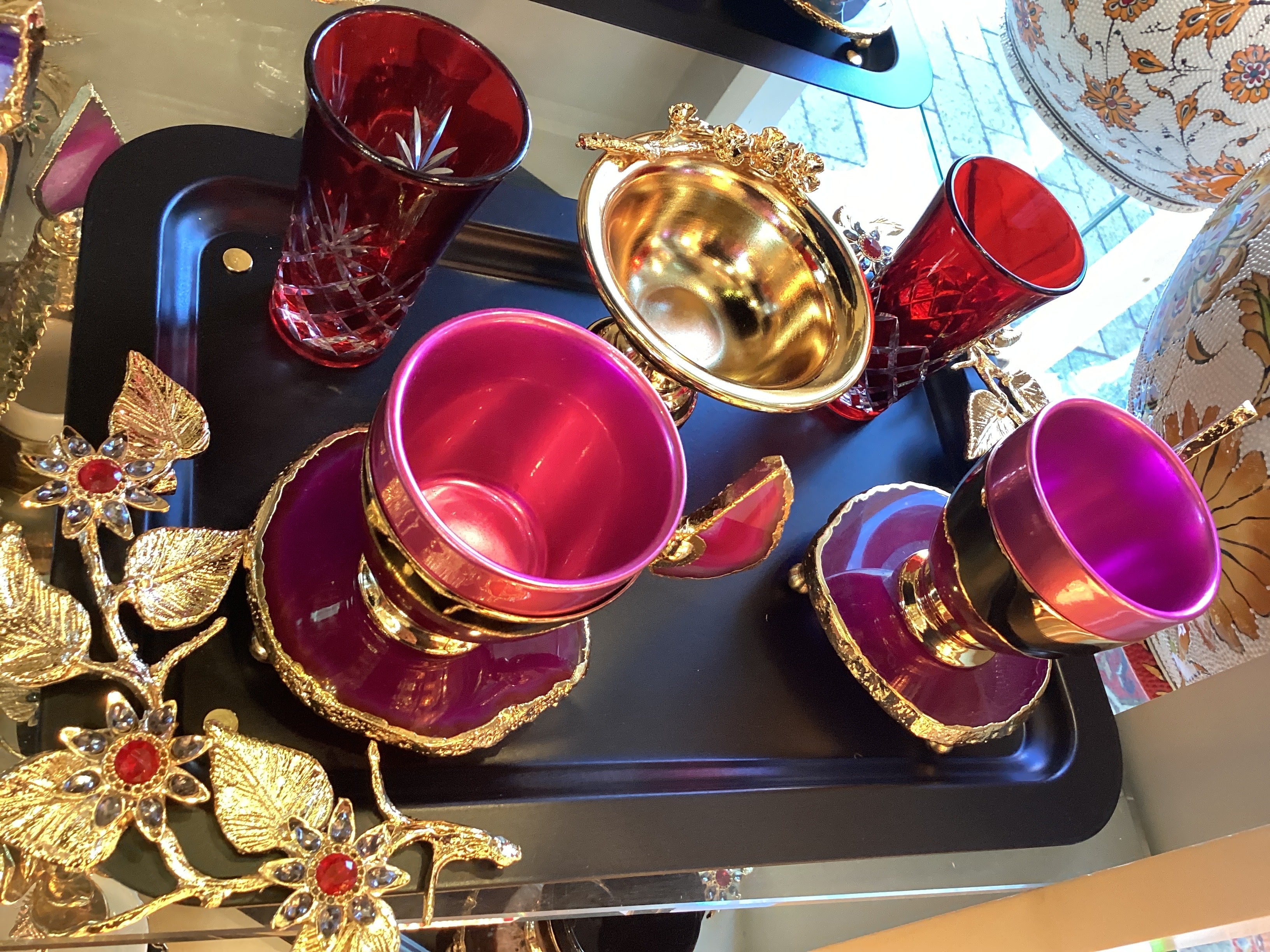 Hand made agate double serve Turkish coffee set with tray