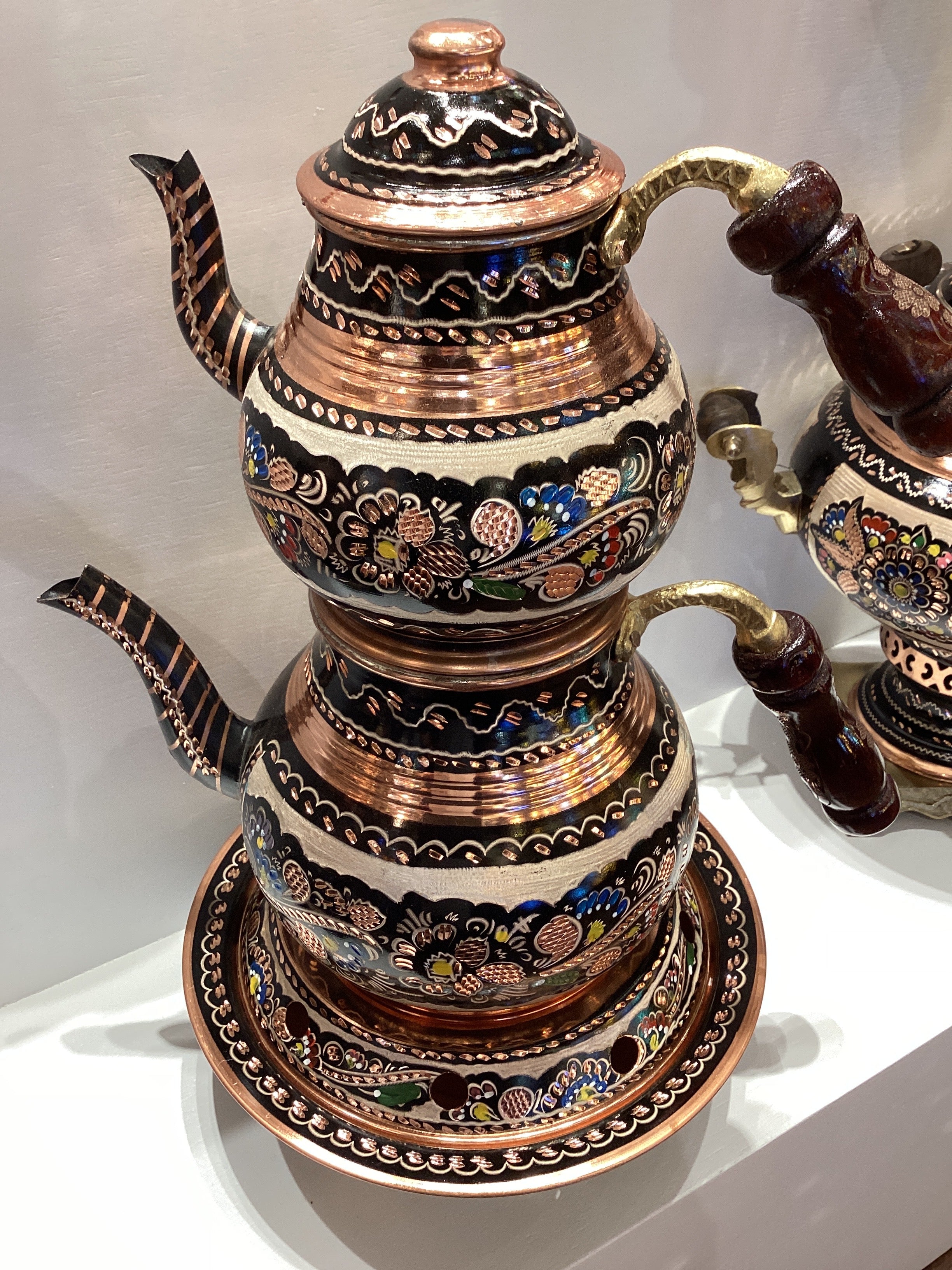 Hand made copper double tea pot