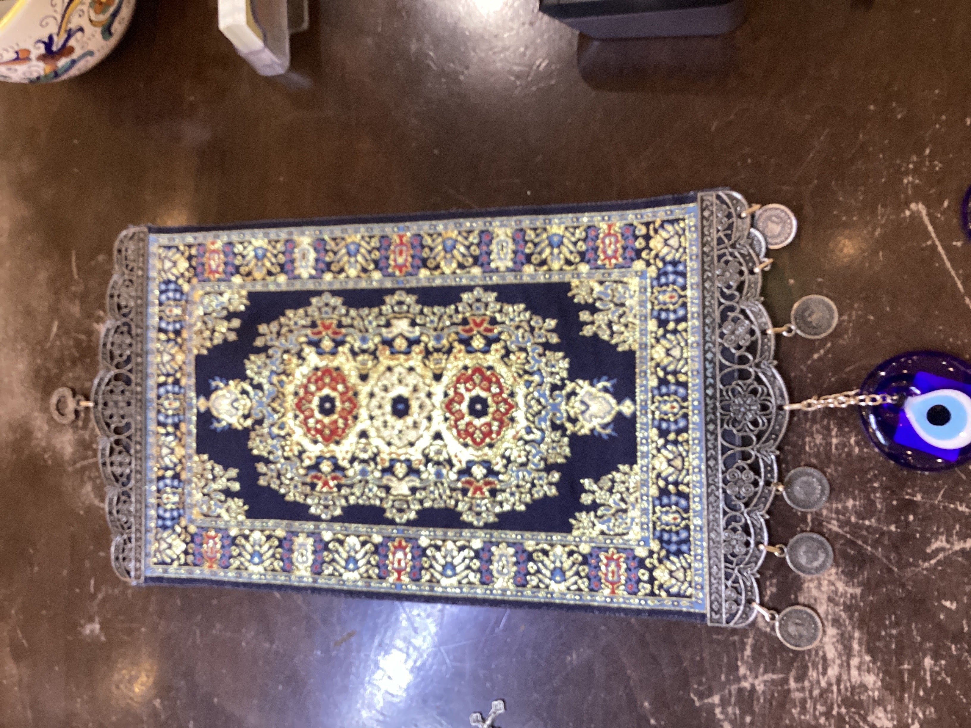 Hand tufted Turkish's rug design with decorations piece with evil eye